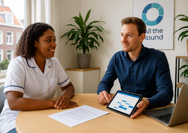 Wil jij als zorgprofessional elke dag verschil maken, zónder zorgen over inkomen, administratie of continu solliciteren? Dan is werken in loondienst via All the Round precies wat jij nodig hebt. Je krijgt de stabiliteit van een vast contract, de ondersteuning van een betrokken werkgever én de ruimte om jezelf te blijven ontwikkelen.