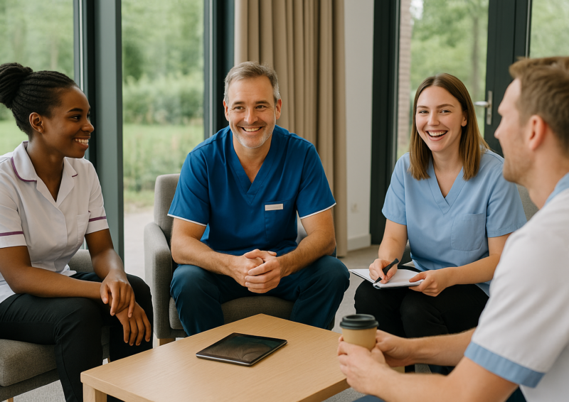 We organiseren inspiratiemomenten en delen kennis. Zo bouwen we samen aan een sterke, menselijke zorgsector waarin jij er nooit alleen voor staat.